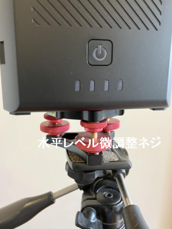 タブレットの画面をみながら三脚の足で水平を調整するのですが、それだけではなかなかうまくいきません。