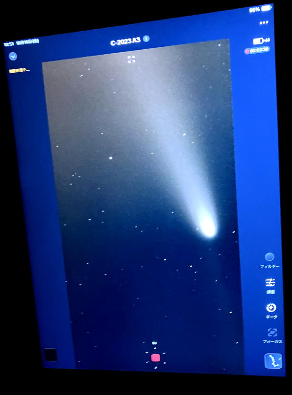 この時はSeaStar50(スマート望遠鏡)の操作が未熟でiPadに保存がうまくいかないので、iPadに表示された画像をスマホで撮影した写真です。